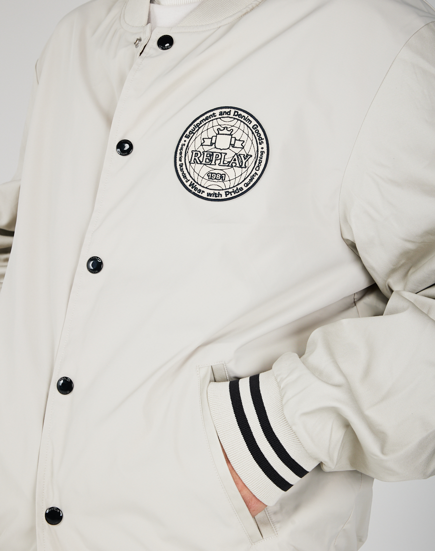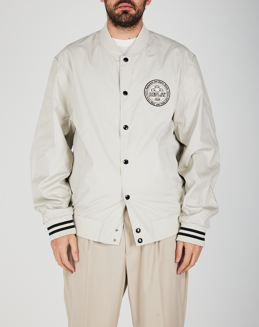 Giubbotto college con logo laterale. Chiusura con bottoni a cli e tasche anteriori a filo