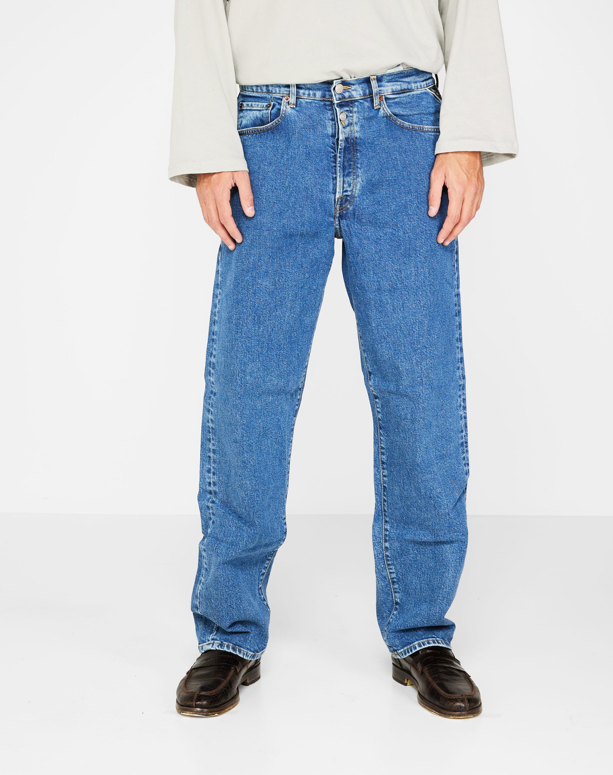 Jeans 5 tasche con cavallo regolare e gamba morbida con fondo 24 cm, Chiusura con bottoni in metallo