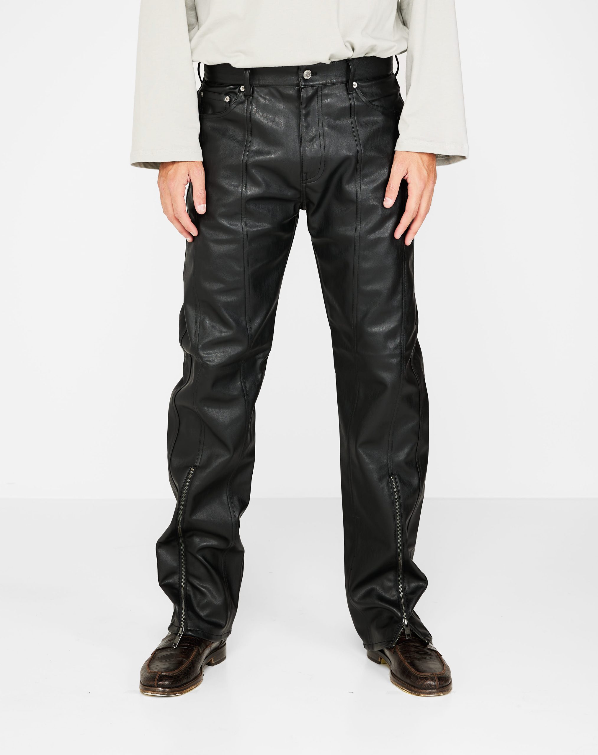 Pantaloni 5 tasche cavallo regolare e gamba slim. Chiusura con bottone e zip con fondo 19 cm e zip