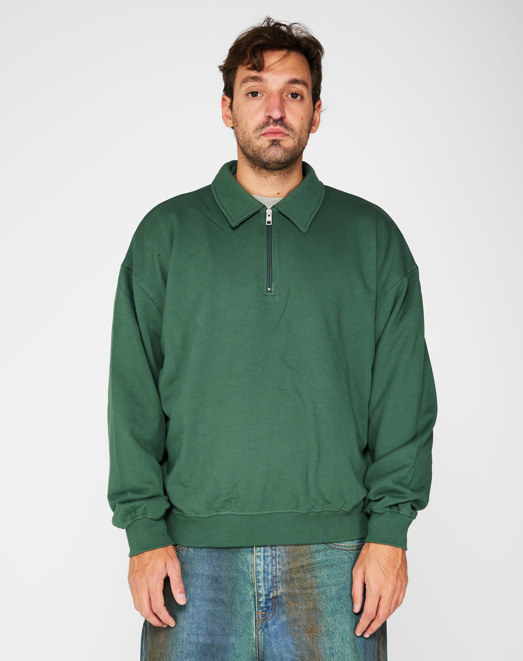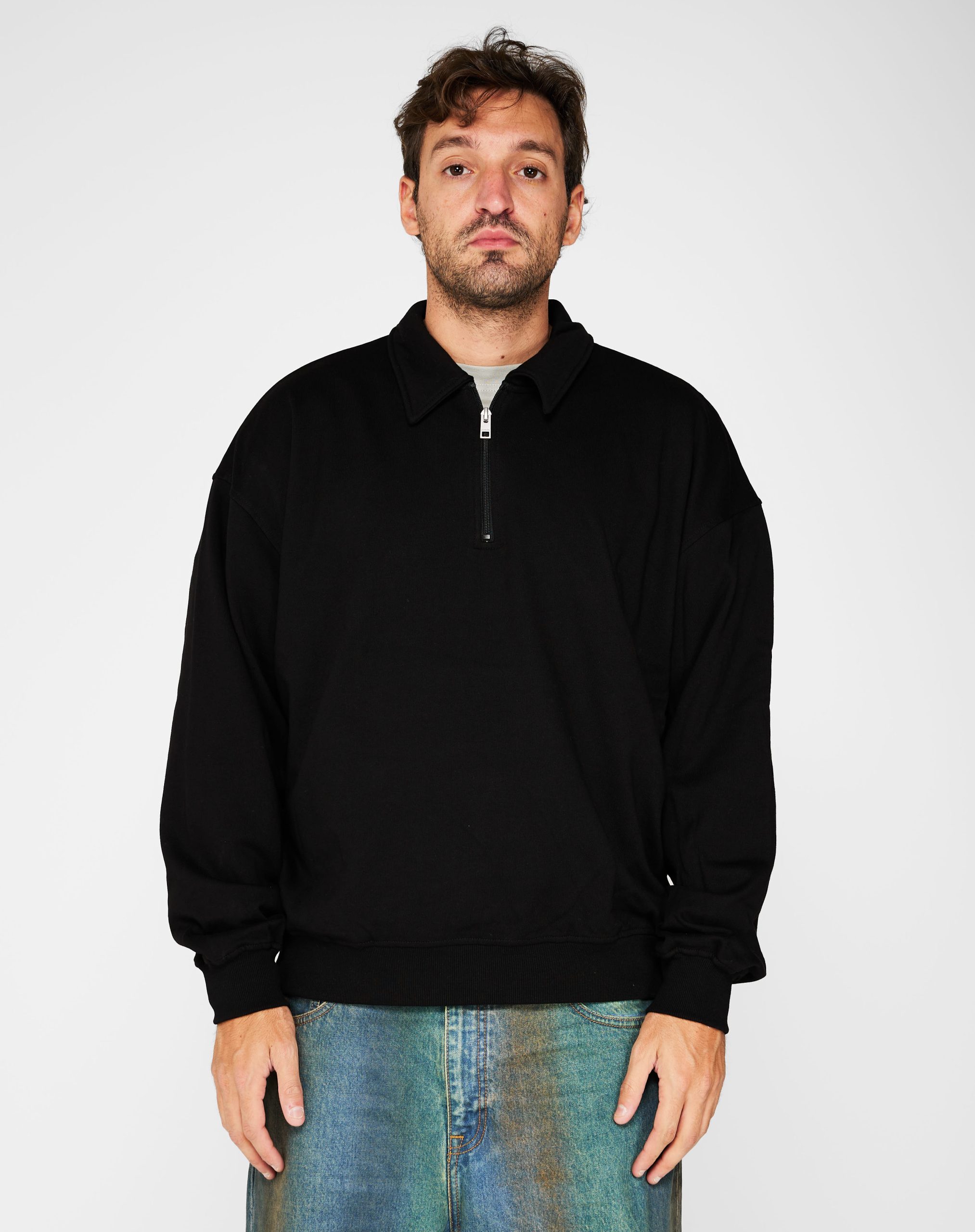 Felpa con collo polo con zip. elastico sui polsi e sul fondo