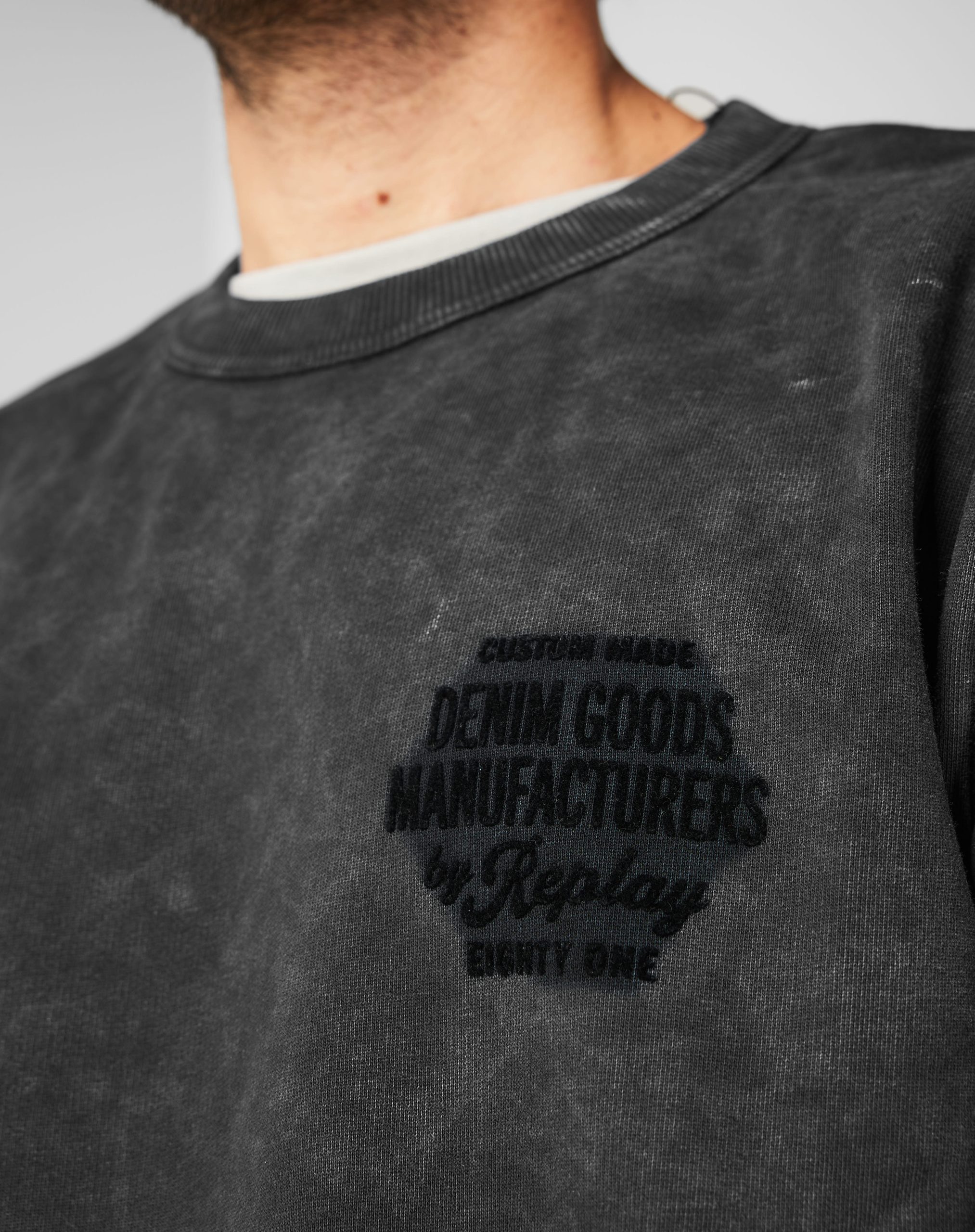 Felpa girocollo con logo picollo tono su tono. Elastico sui polsi e sul fondo