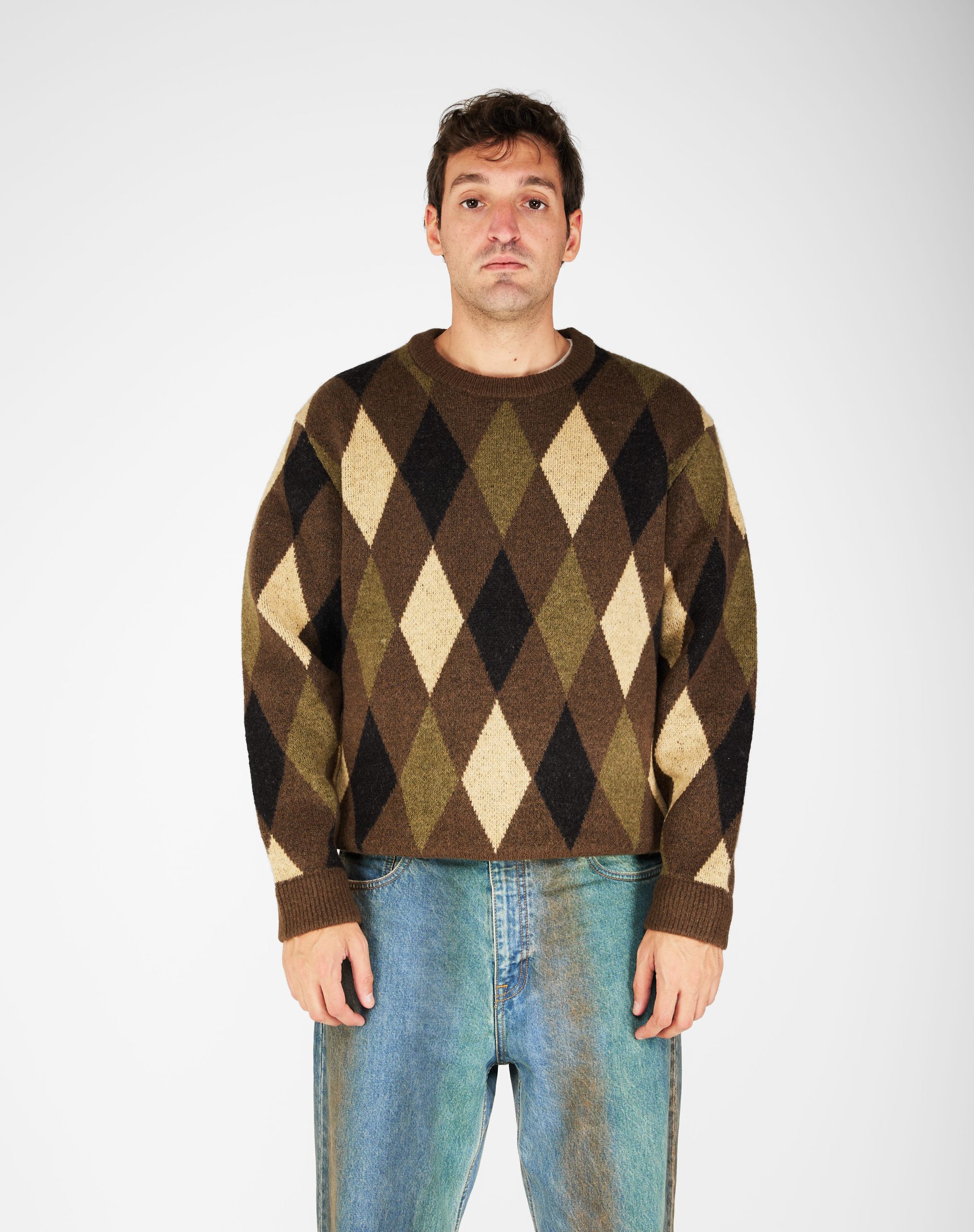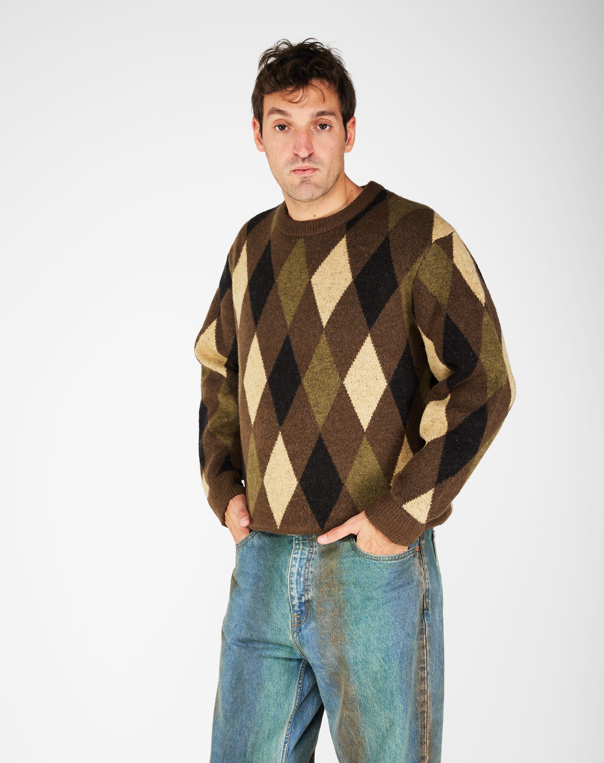 Maglia girocollo fantasia rombi. Elastico sui polsi e sul fondo