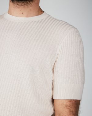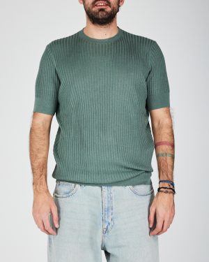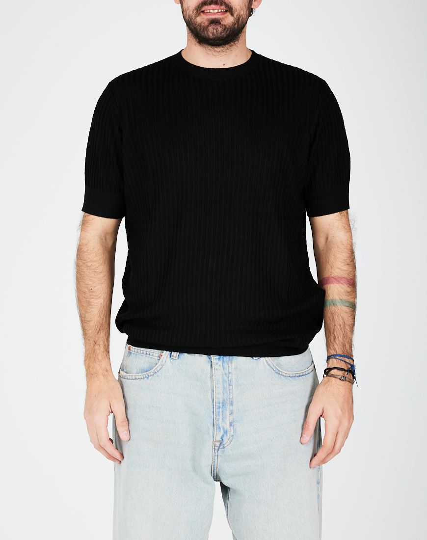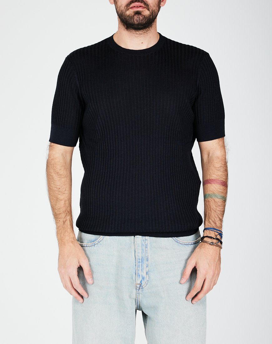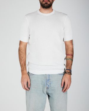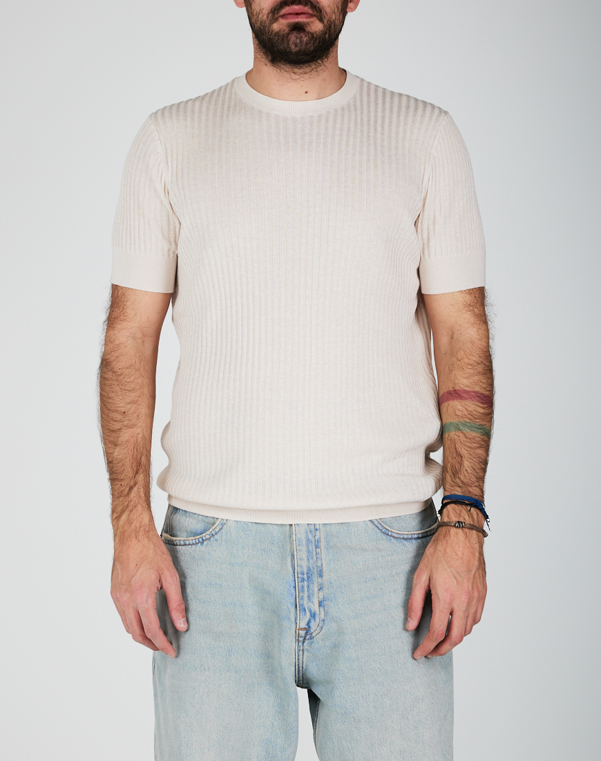 T-shirt girocollo con lavorazione a coste verticali. elastico sui polsi e sul fondo